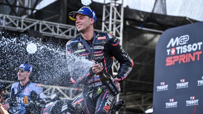 Marco Bezzecchi tampil luar biasa di MotoGP Australia 2025 akhir pekan lalu. Pebalap Aprilia itu sukses naik podium, meski harus menjalani hukuman double long lap penalty akibat insiden di seri sebelumnya di Mandalika.