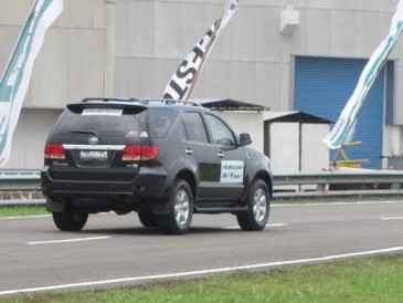 Sesi kedua, detikOto menggunakan kendaraan yang sama Toyota Fortuner dengan menggunakan ban dari kompetitor.