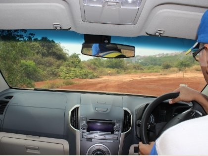 Perjalanan pun terus berlanjut. Pedal gas terus digeber hingga menemui turunan dan langsung menanjak. Terdengar suara gesekan tanah ke foot step. Tidak menyentuh ke sasis atau bumper. Pasalnya mobil tersebut memiliki ground clearance 231 mm.