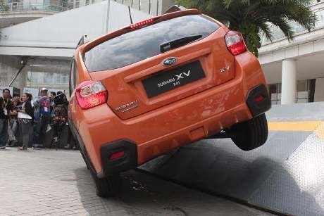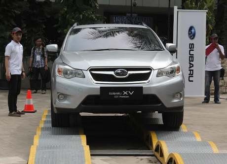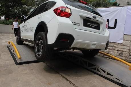 Ternyata melaju di jalan miring, pakai mobil Subaru bukan masalah. Saat melewati jalur itu bisa disimpulkan Subaru XV ini memiliki desain simetris yang membuat kesimbangan lebih baik, mesin boxer dengan pusat gravitasi yang rendah, dan symmetricall all-wheel drive.