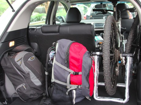 Saat ingin membawa sepeda, kursi penumpang bagian tengah bisa dibuat tertidur untuk menyimpan sepeda lipat atau bahkan papan selancar berukuran sedang.
