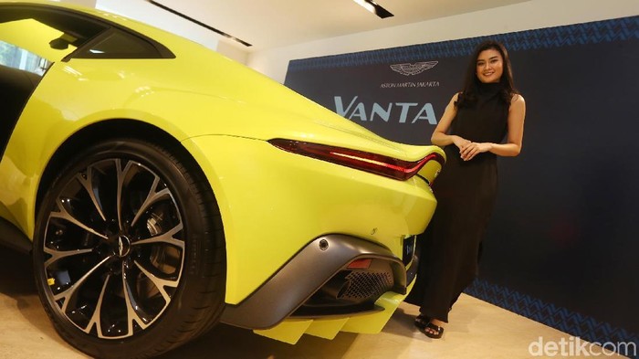 Model berpose dengan Aston Martin Vantage seharga Rp 5 miliaran (Foto: Ari Saputra)
