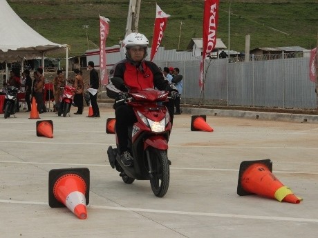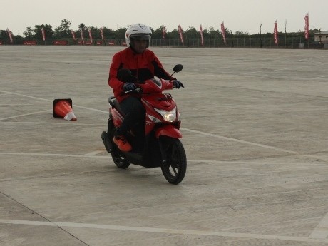Saat sesi test ride yang jalurnya hanya lurus kurang lebih 80 meter ini, detikOto mencoba untuk merasakan teknologi eSP yang ada pada Honda BeAT terbaru ini.