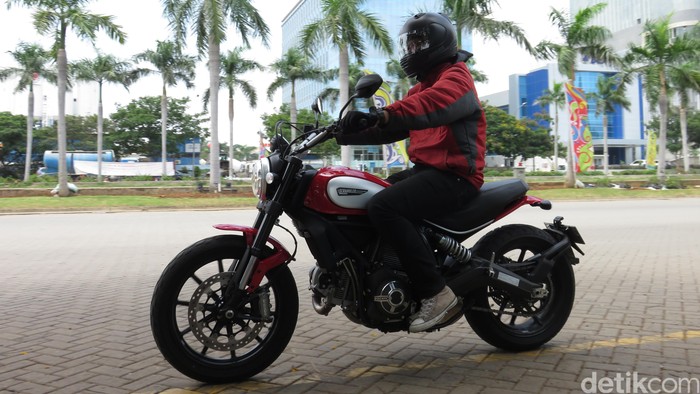 Karakter mesin Desmodromic yang detikOto rasakan di Scrambler ini beberapa kali mengentak. Jadi, bagi yang belum terbiasa jangan sampai kaget.