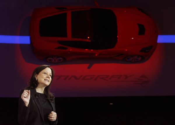 Mary Barra saat launching Chevrolet Corvette Stingray (Reuters).