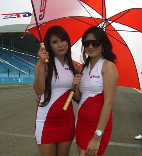 Di lintasan sirkuit, para gadis seksi ini dengan setia menemani dan memayungi pembalap yang sudah berada di starting line up dan membuatnya sedikit rileks sesaat sebelum balapan dimulai.
