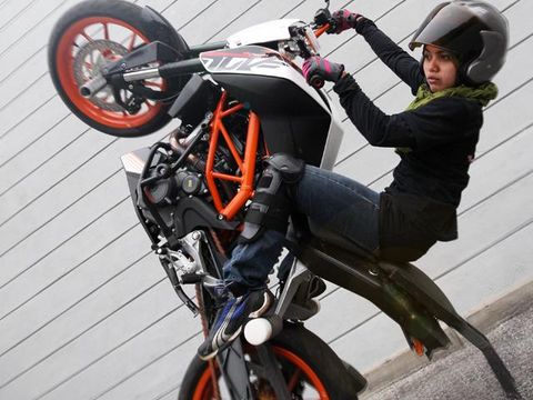 "Dia (representatif dari RK-M) menawarkan untuk melatihku dalam beberapa minggu rupanya aku benar-benar bisa melakukan gerakan stunt dasar. Dia terkesan dan memintaku untuk bergabung dengan timnya, aku pun setuju. Aku tidak tahu mengapa aku langsung setuju. Aku pikir aku sudah bisa mengendarai motor sejak berusia 18 tahun tapi hanya untuk berpergian bukan melakukan akrobat," cerita wanita yang kini sudah 11 tahun menjadi stunt riding.
