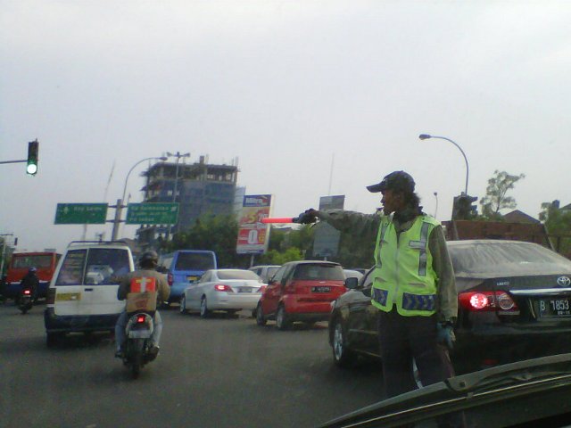 - Pagi-pagi Jalan di perempatan PGA (Gedung Fedex), Pondok Pinang, Jaksel, selalu macet. Tetapi polisi dadakan ini selalu membantu kelancaran arus.
