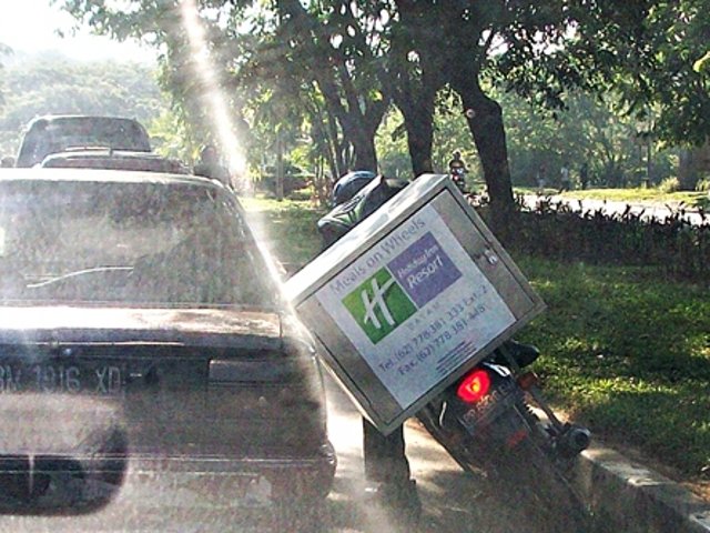Ups! Kepeleset Setelah dibantu untuk berdiri kembali, barulah sepeda motor tersebut bisa melanjutkan perjalanan.
