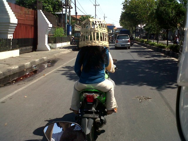 Helm Keranjang Bambu Keselamatan adalah hal utama dalam perjalanan. Satu helm SNI saja tidak cukup. (Foto Hendry Alfiandi) Mengutamakan keselamatan bukan berarti 'aneh'. (Foto Hendry Alfiandi) Foto diambil di wilayah Surabaya Utara. (Foto Hendry Alfiandi).