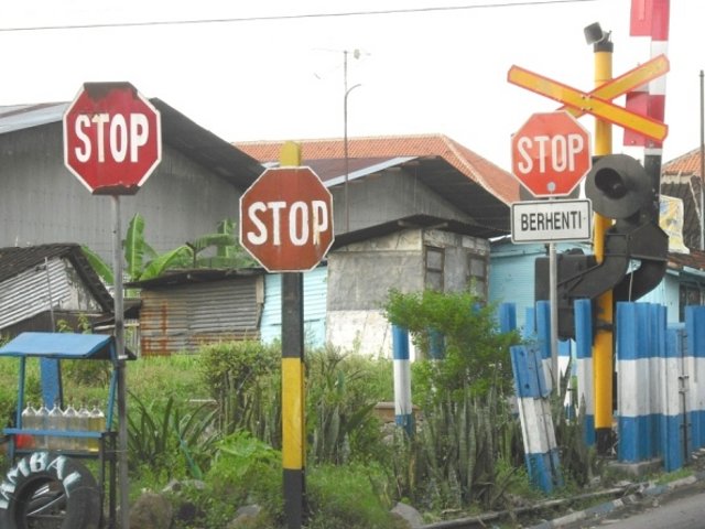 Rambu yang Mubazir Masih banyak perlintasan lain yang tidak berambu, bahkan tidak berpalang sama sekali sehingga sering mengakibatkan kecelakaan. (Foto: Andreanto Rosli).