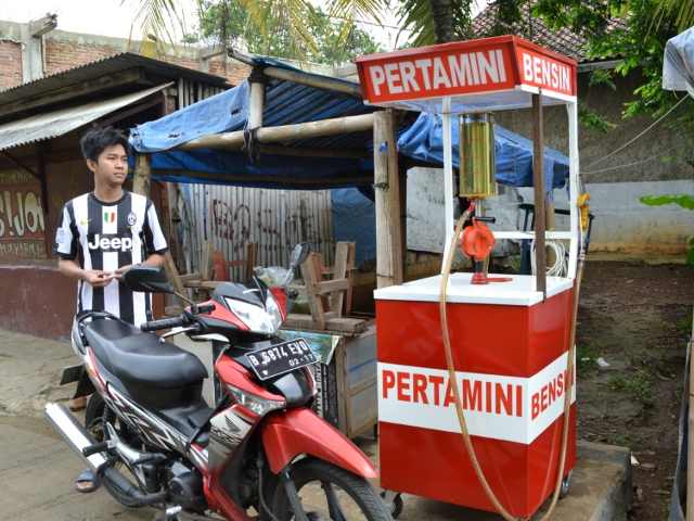 - Dengan menggunakan nama Pertamini, penjual bensin eceran ini mengadopsi SPBU biasa, dan menggunakan alat yang dibuat semirip mungkin.