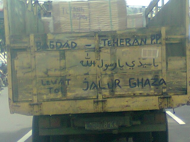 - Truk antar negara ini tertangkap kamera sedang lewat di Surabaya. Truk ini jurusan Baghdad - Teheran PP, melewati Jalan tol dan Jalur Ghaza. Ada-ada saja ya