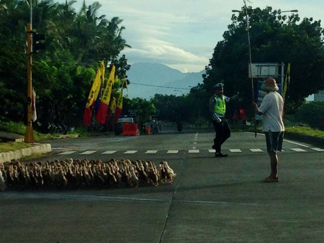 Polisi Bantu Bebek Menyeberang