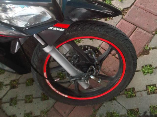 - Seorang pengendara memarkir motor di depan mesjid menjelang salat jumat. Biar motornya aman dari maling, motor digembok dengan memakai rantai kapal ini.