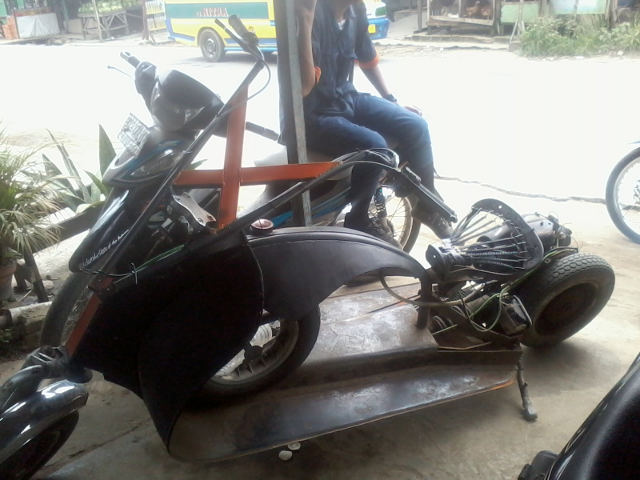 Motor Vespanya Ghost Rider Kerangka Vespa yang memiliki kesan seperti motor Ghost Rider. (Foto Ditya-Pratama). Pemilik motor adalah siswa STM kelas X, foto diambil di depan warnet, Kota Medan, Sumut. (Foto Ditya Pratama).