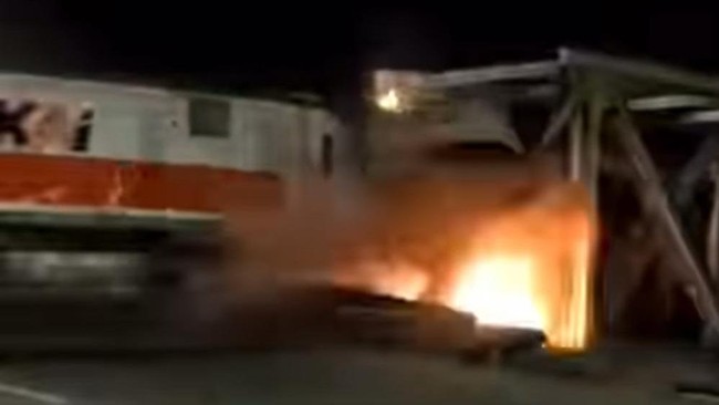 Kereta Api (KA) Brantas menabrak truk di perlintasan Jalan Madukoro Raya, Semarang, Selasa (18/7/2023) malam. Kecelakaan itu sampai menimbulkan kobaran api dan ledakan.