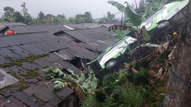 Sebuah bus yang mengangkut rombongan keluarga masuk jurang di jalur alternatif Puncak, Bogor, Jawa Barat. Kecelakaan diduga akibat sopir tidak hapal medan dan kurang konsentrasi.