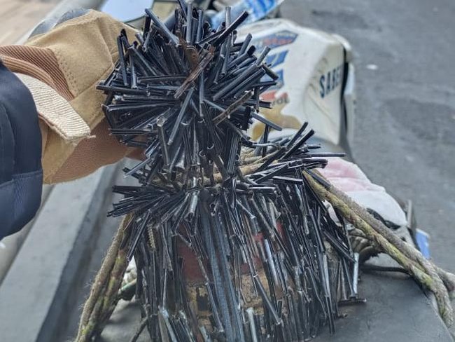 Rohim bilang, ranjau paku tersebar di semua lajur, termasuk lajur kiri, tengah dan kanan.