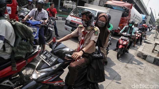 Tak hanya untuk pejalan kaki, menggunakan masker juga menjadi penting bagi pengendara sepeda motor.